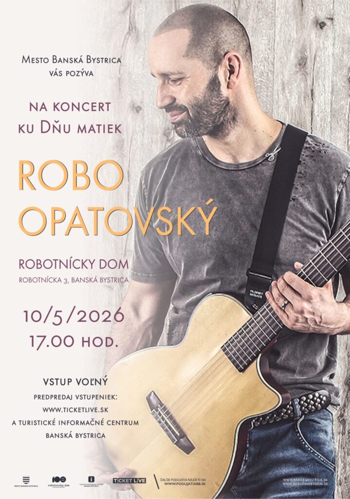 V rámci plánovaných podujatí v roku 2026 nechýba ani program ku Dňu matiek, ktorý pripravujeme v Robotníckom dome. Po koncertoch Duchoňovcov, Petra Cmoríka, Funny Fellows, Mila Kráľa či minuloročného vystúpenia Filipa Tůmu, sa o tohtoročný program postará populárny spevák a charizmatický umelec Robo Opatovský. V programe zaznejú jeho najznámejšie hity a emotívne skladby, ktoré sú oslavou lásky, úcty a vďaky všetkým ženám. Pre všetky mamy, staré mamy či babky bude navyše pripravený kvietok ako symbol poďakovania.